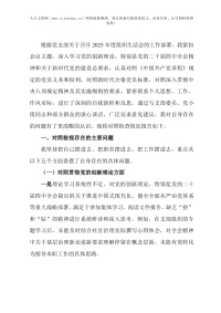 公司党支部班子2025年度组织生活会对照检查材料