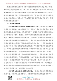 机关党支部2025年度组织生活会班子对照检查材料(五个对照)