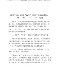 经验交流:构建“1435”X建工作体系 解决“魂”“根”“本”“干”问题