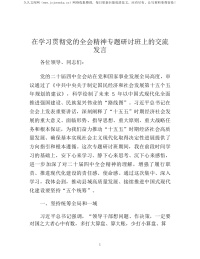在学习贯彻全会精神研讨会上的发言