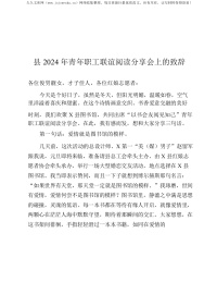 县2024年青年职工联谊阅读分享会上的致辞