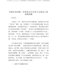 在银行如何做一名和各分行负责人交流会上的党课讲稿