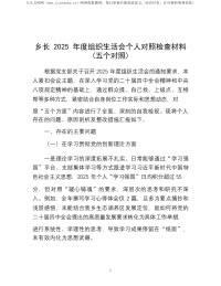 乡长2025年度组织生活会个人对照检查材料(五个对照)