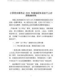 小学党支部书记2025年度组织生活会个人对照检查材料