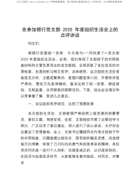 在参加银行党支部2025年度组织生活会上的点评讲话