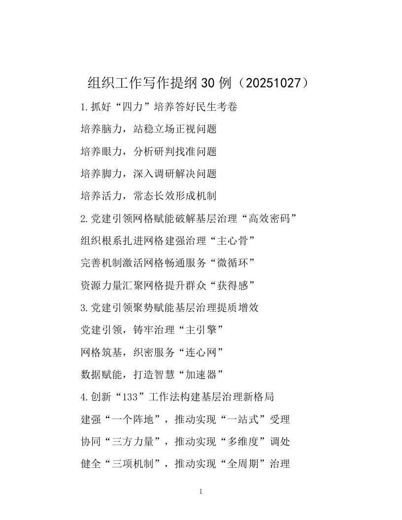 首页写作提升写作提纲组织工作写作提纲30例(20251027)