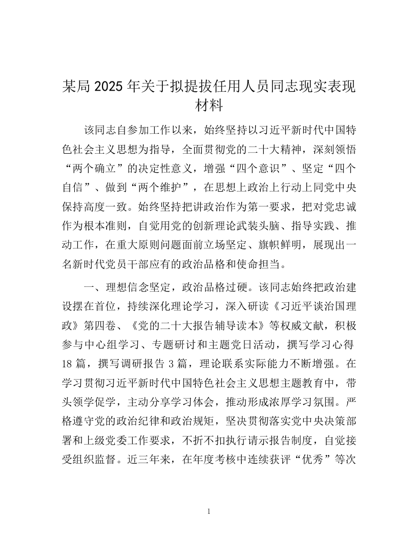 某局2025年关于拟提拔任用人员同志现实表现材料