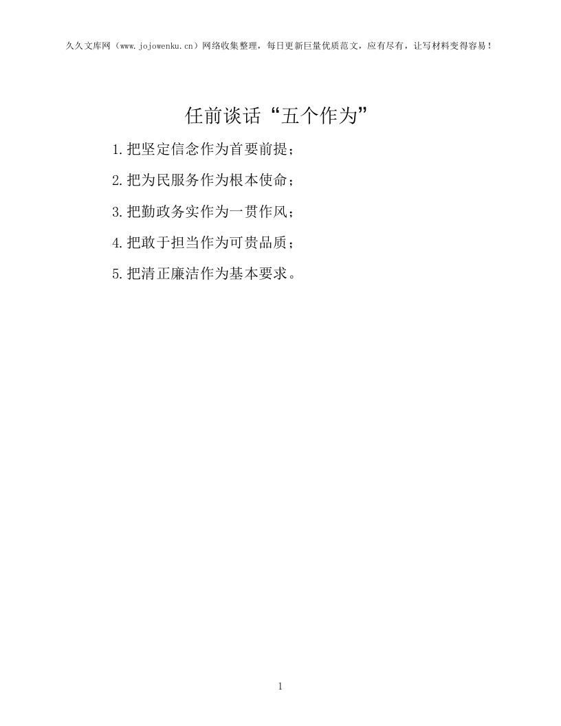 任前谈话“五个作为”