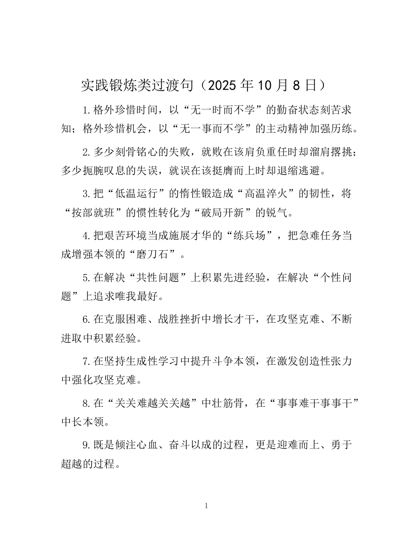 首页写作提升过渡句实践锻炼类过渡句(2025年10月8日)