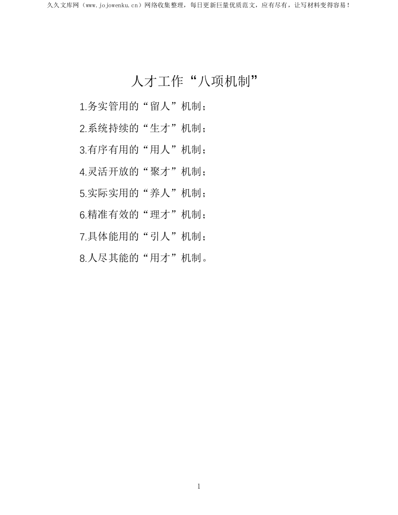 人才工作“八项机制”