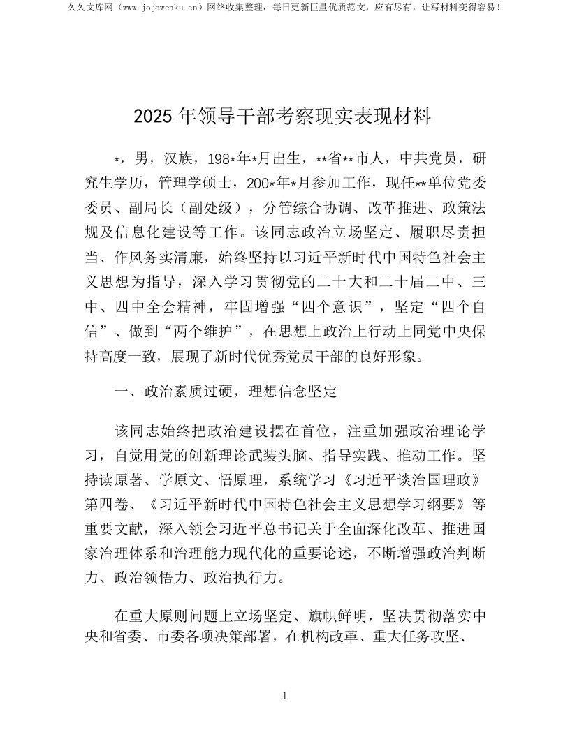 首页公文大全申请入党等党务材料现实表现2025年领导干部考察现实表现材料