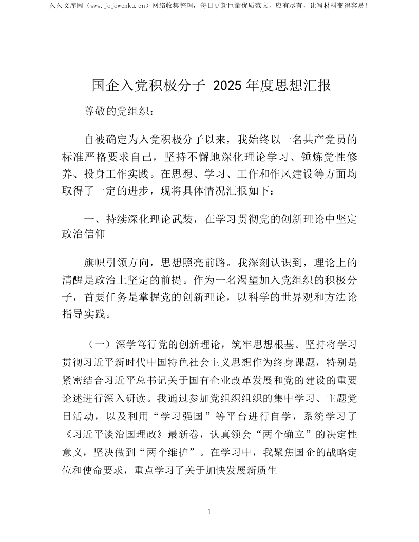 首页公文大全总结报告汇报国企入党积极分子2025年度思想汇报
