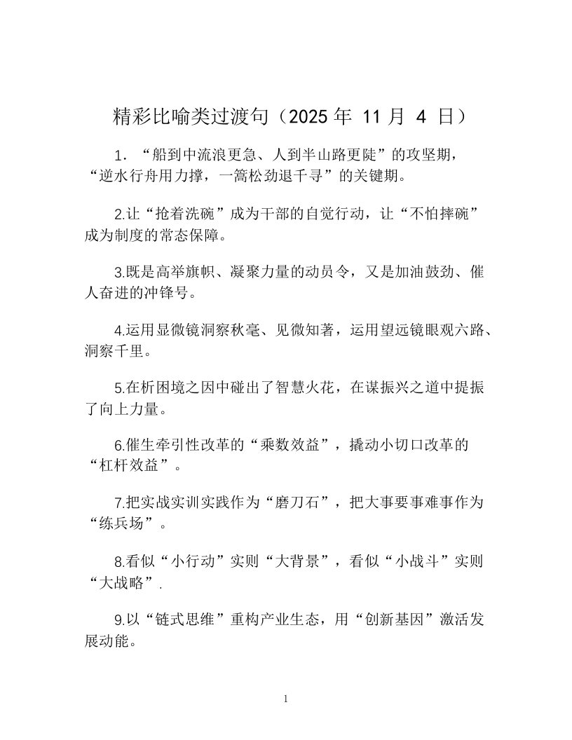 首页写作提升过渡句精彩比喻类过渡句(2025年11月4日)