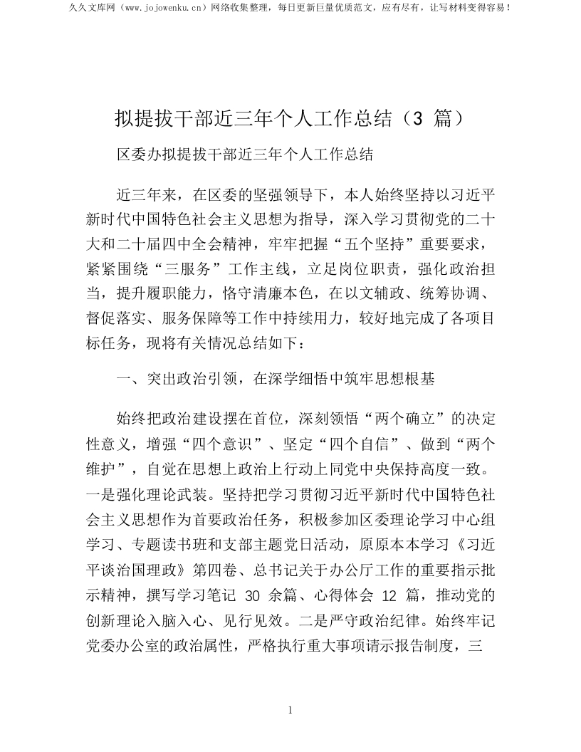拟提拔干部近三年个人工作总结(3篇)