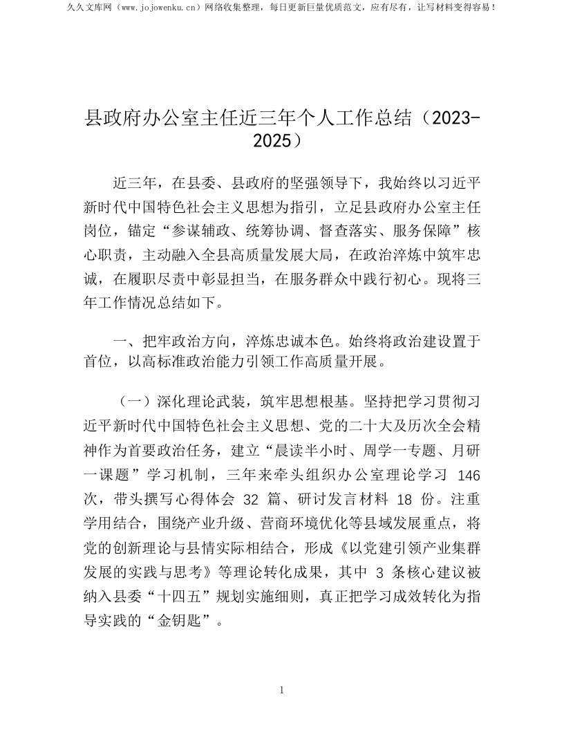 首页公文大全总结报告总结县政府办公室主任近三年个人工作总结(2023-2025)