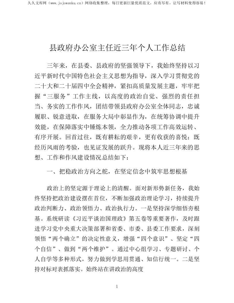首页公文大全总结报告总结县政府办公室主任近三年个人工作总结