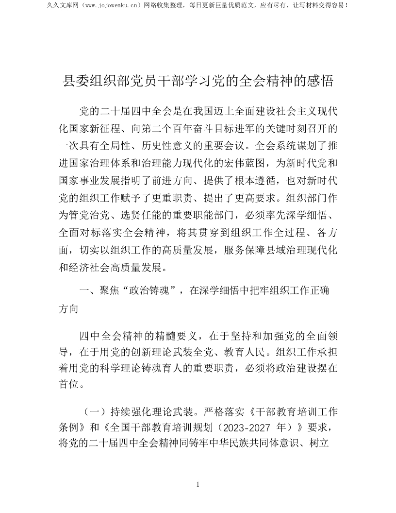 县委组织部党员干部学习党的全会精神的感悟