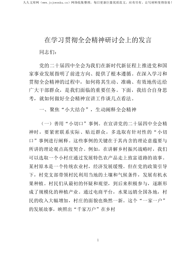首页公文大全讲话发言交流发言在学习贯彻全会精神研讨会上的发言