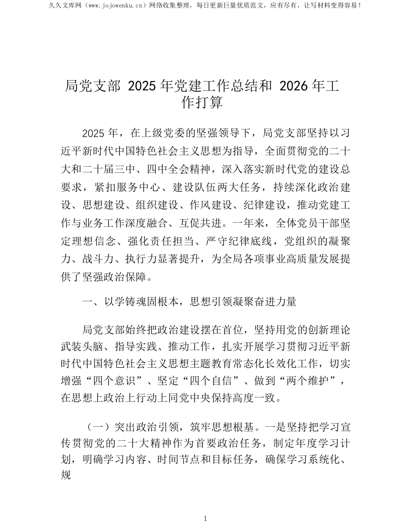 首页公文大全总结报告总结局党支部2025年党建工作总结和2026年工作打算