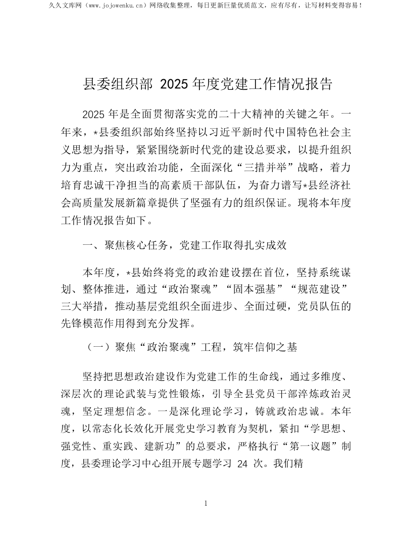 首页公文大全总结报告报告县委组织部2025年度党建工作情况报告