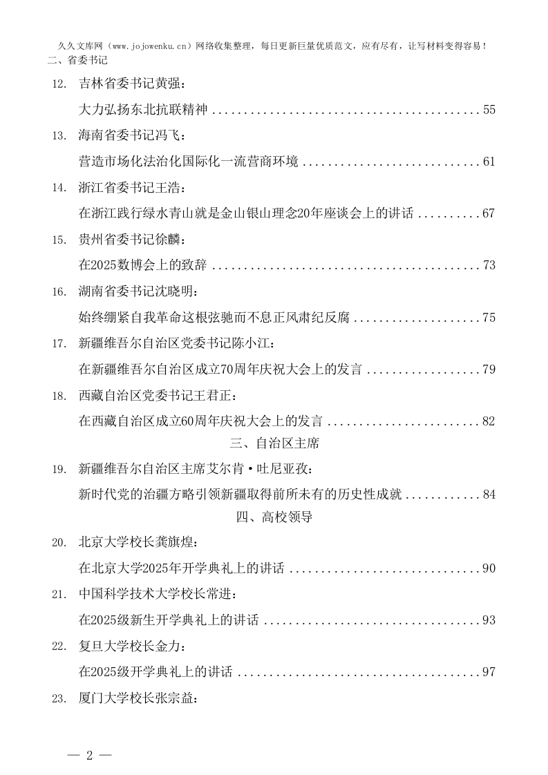 (28篇)2025年9月省部级主要领导干部公开发表的讲话文章