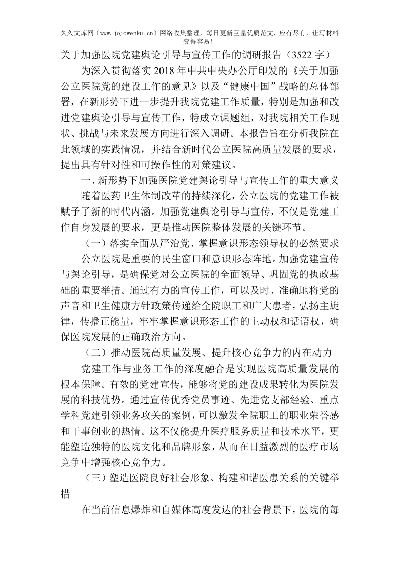 关于加强医院党建舆论引导与宣传工作的调研报告(3522字)