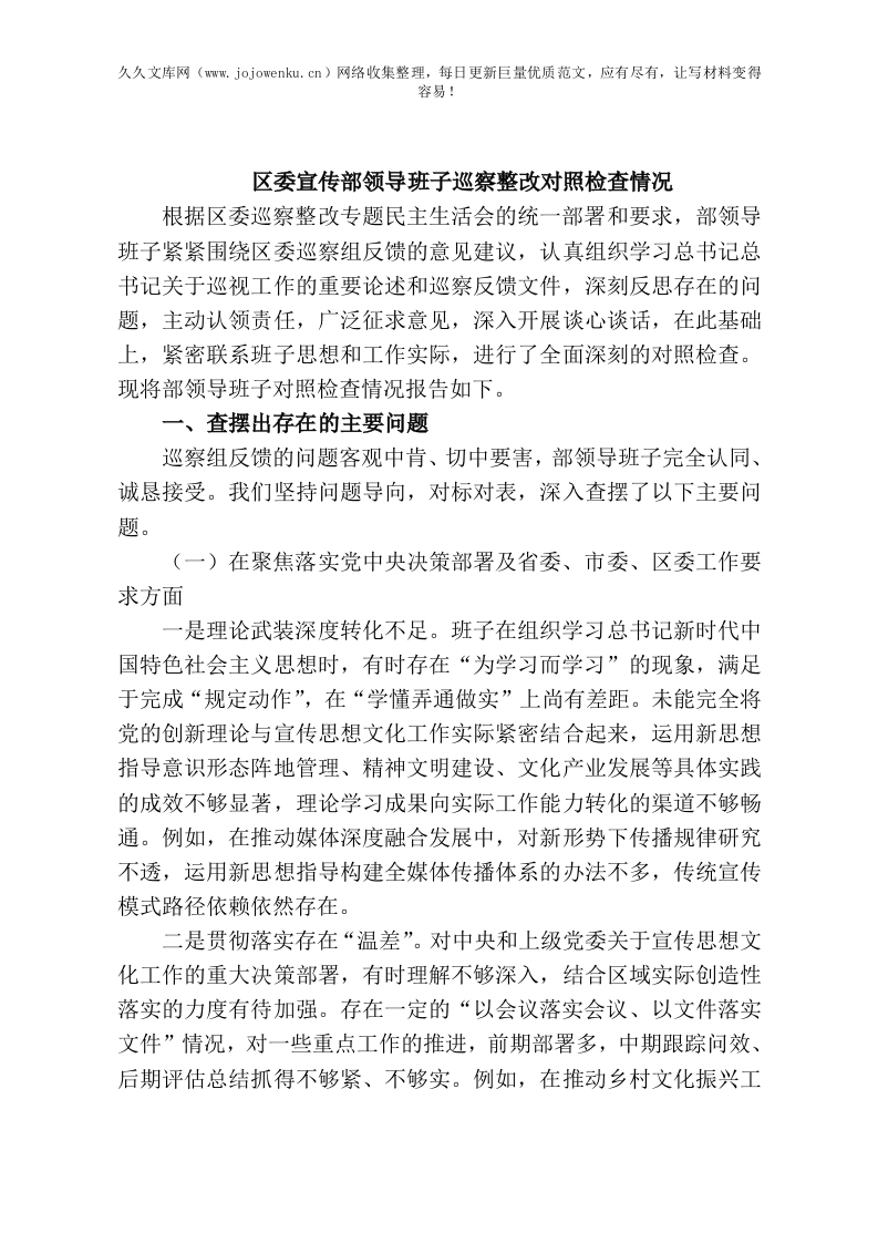 首页公文大全对照检查区委宣传部领导班子巡察整改对照检查情况