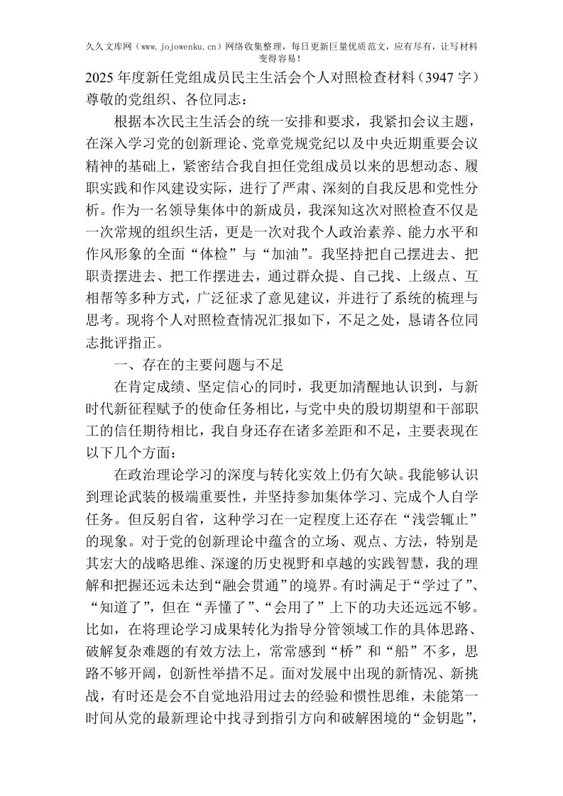 首页公文大全对照检查2025年度新任党组成员民主生活会个人对照检查材料(3947字)