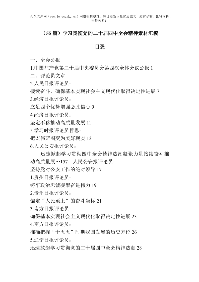 (55篇)学习贯彻党的二十届四中全会精神素材汇编
