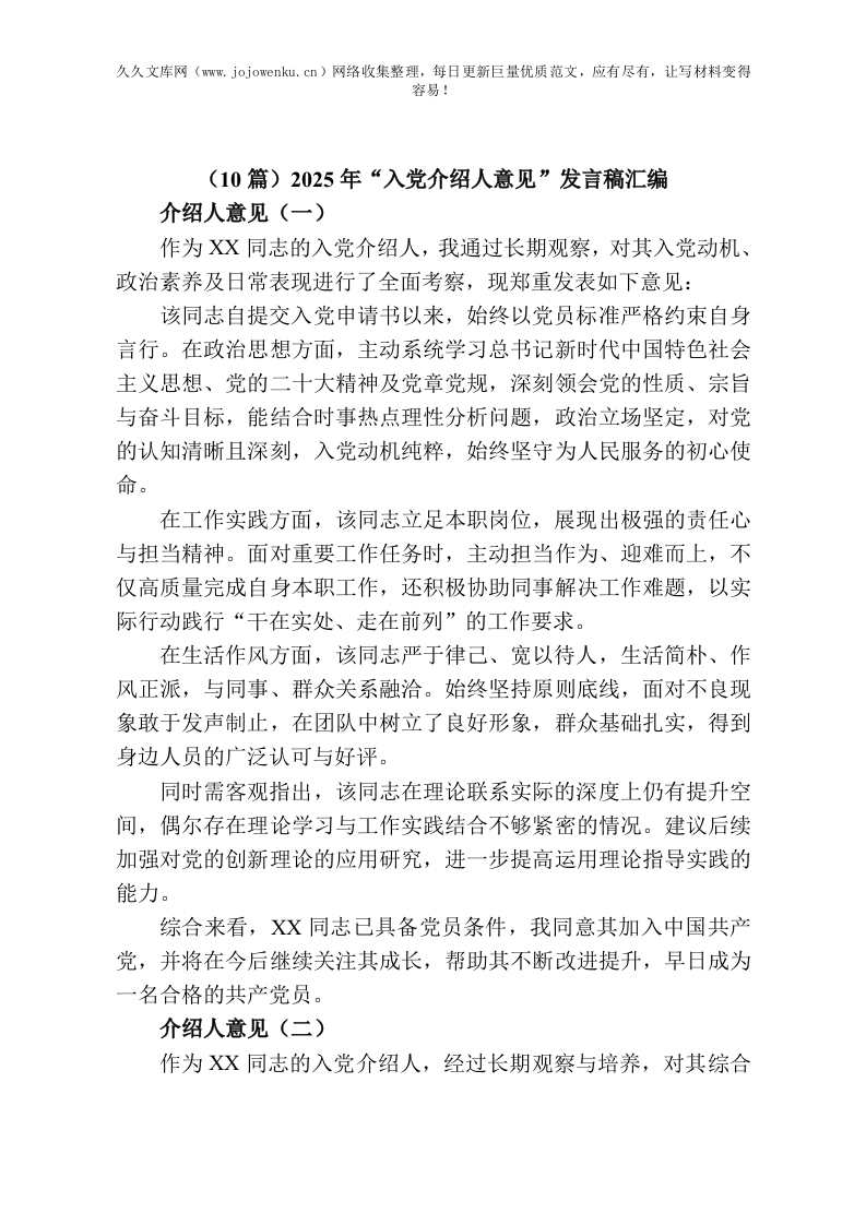 首页公文大全合集汇编5年“入党介绍人意见”发言稿汇编