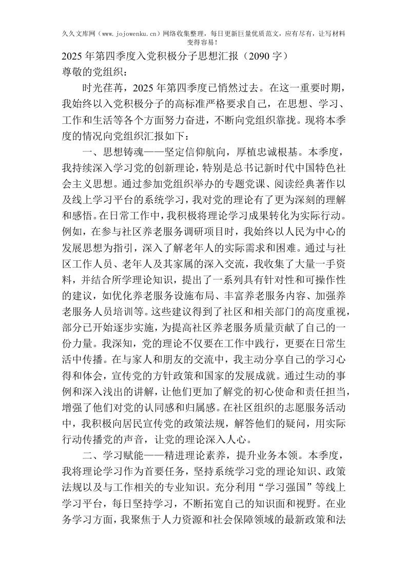 首页公文大全申请入党等党务材料思想汇报2025年第四季度入党积极分子思想汇报(2090字)