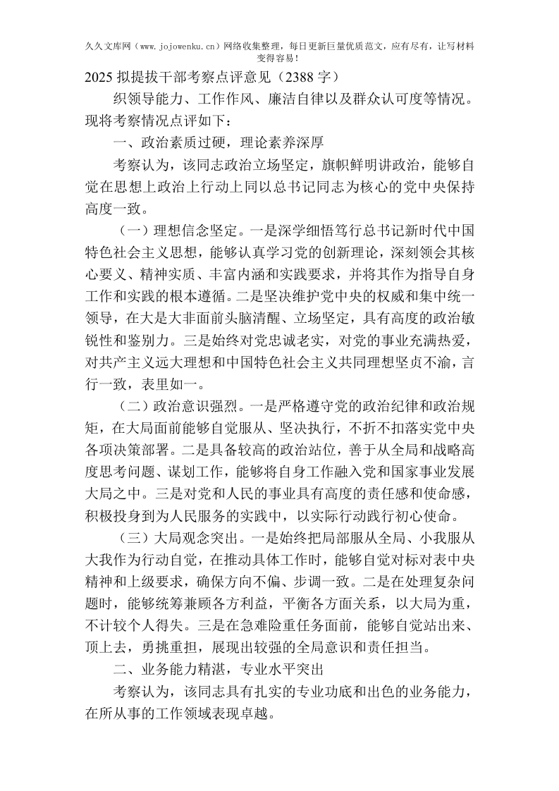 首页公文大全主持辞及其他公文意见2025拟提拔干部考察点评意见(2388字)