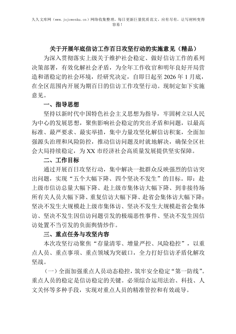 关于开展年底信访工作百日攻坚行动的实施意见(精品)