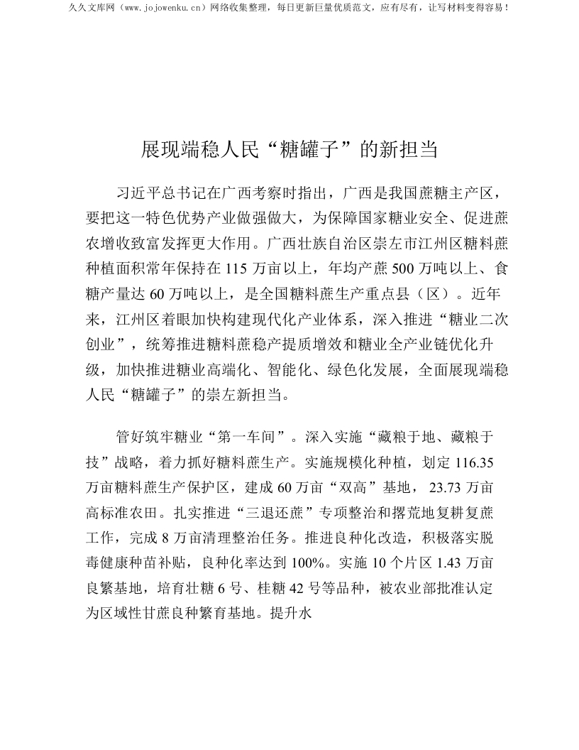 展现端稳人民“糖罐子”的新担当
