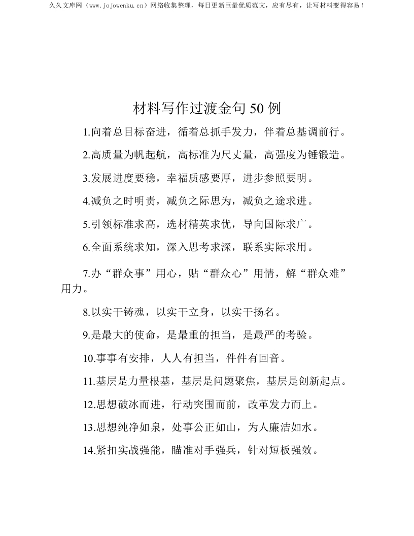 材料写作过渡金句50例