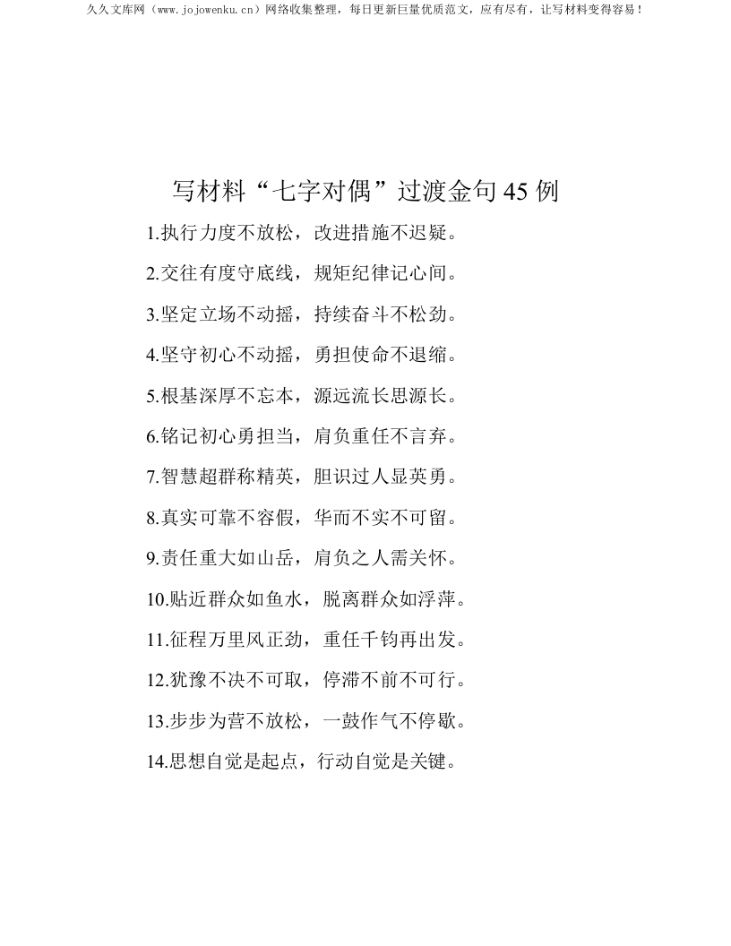 写材料“七字对偶”过渡金句45例