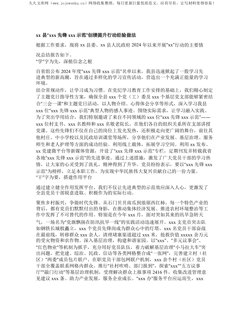 xx县“xxx先锋 xxx示范”创绩提升行动经验做法