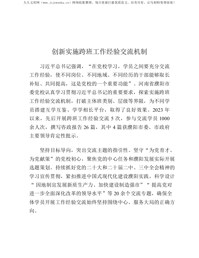 首页公文大全品牌案例经验创新创建创新实施跨班工作经验交流机制