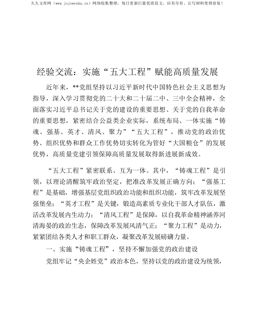 首页公文大全品牌案例经验创新创建经验交流:实施“五大工程” 赋能高质量发展