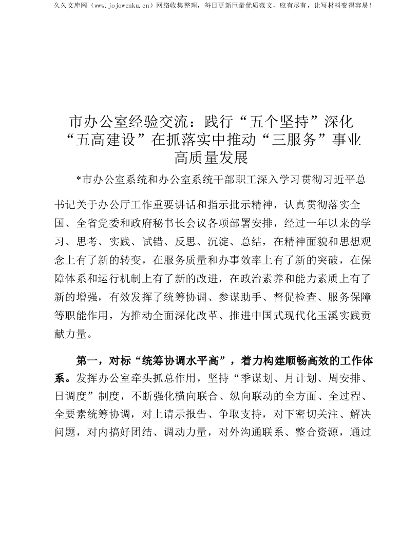 市办公室经验交流:践行“五个坚持” 深化“五高建设” 在抓落实中推动“三服务”事业高质量发展