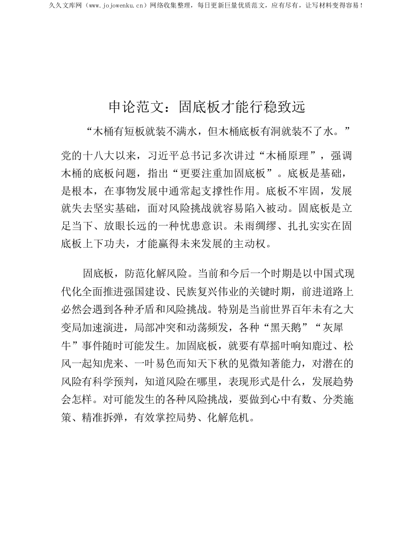 申论范文:固底板才能行稳致远