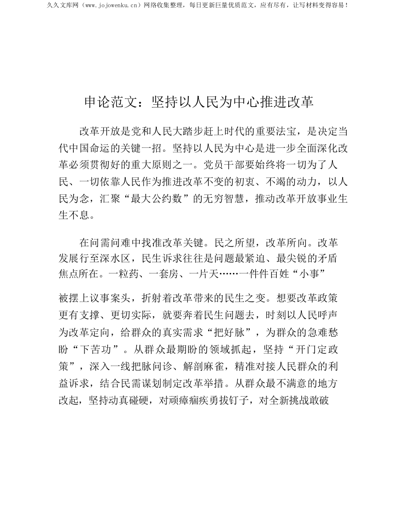 申论范文:坚持以人民为中心推进改革