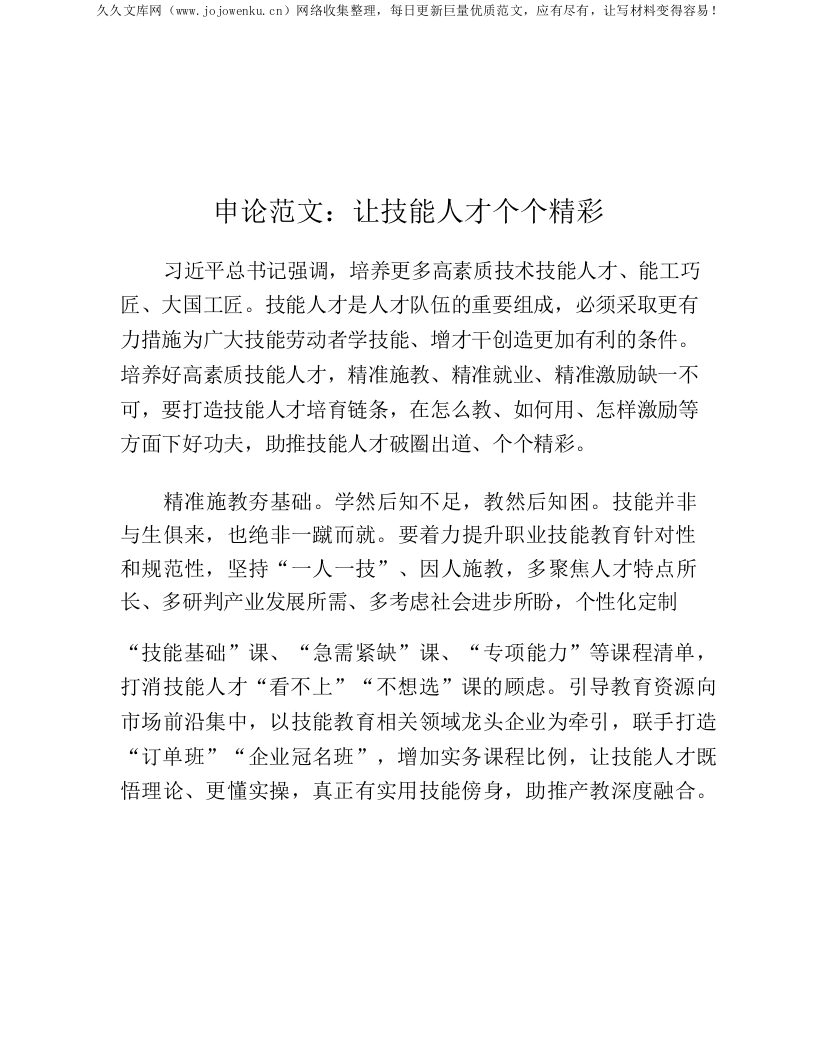 申论范文:让技能人才个个精彩