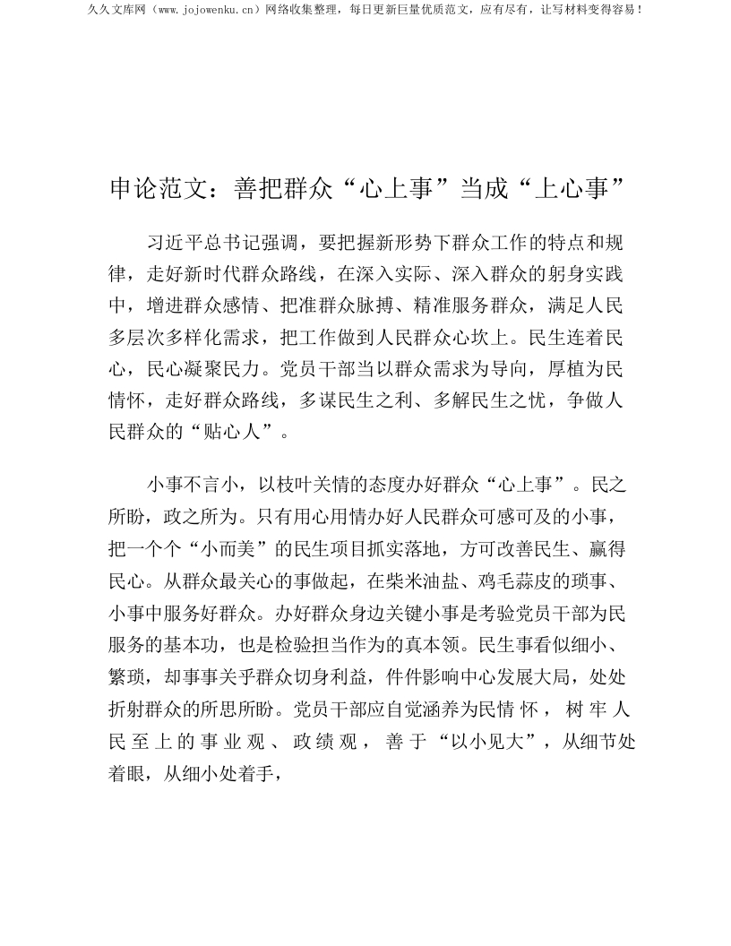 首页公考遴选及体制运行公考遴选申论范文:善把群众“心上事”当成“上心事”
