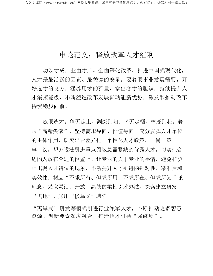 申论范文:释放改革人才红利