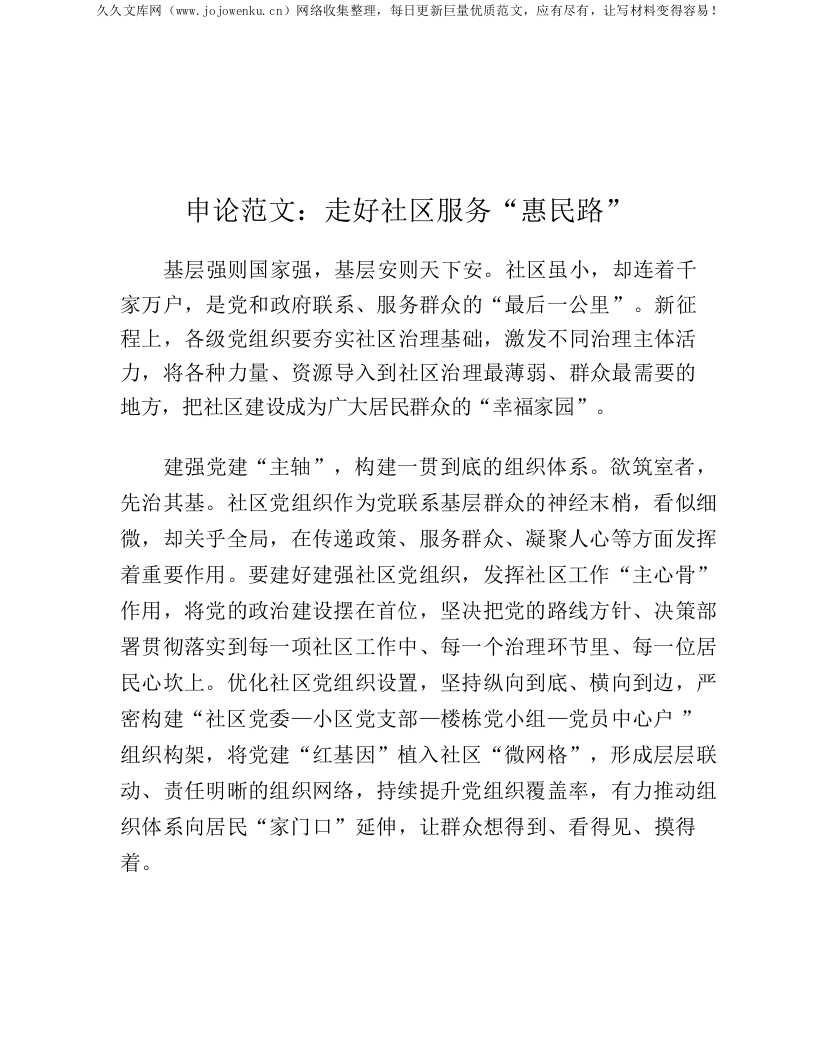 首页公考遴选及体制运行公考遴选申论范文:走好社区服务“惠民路”