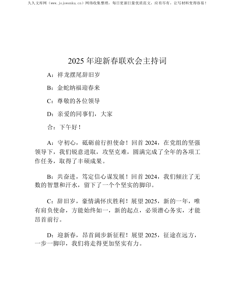 2025年迎新春联欢会主持词