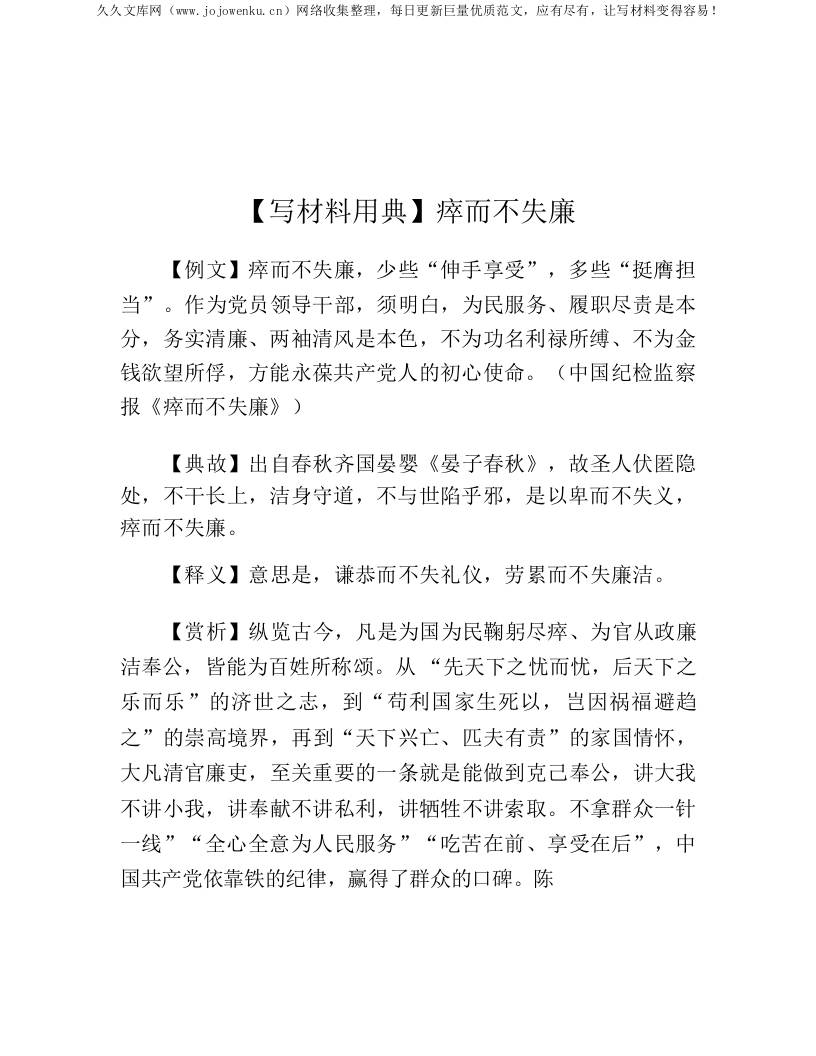 首页写作提升写作用典【写材料用典】瘁而不失廉