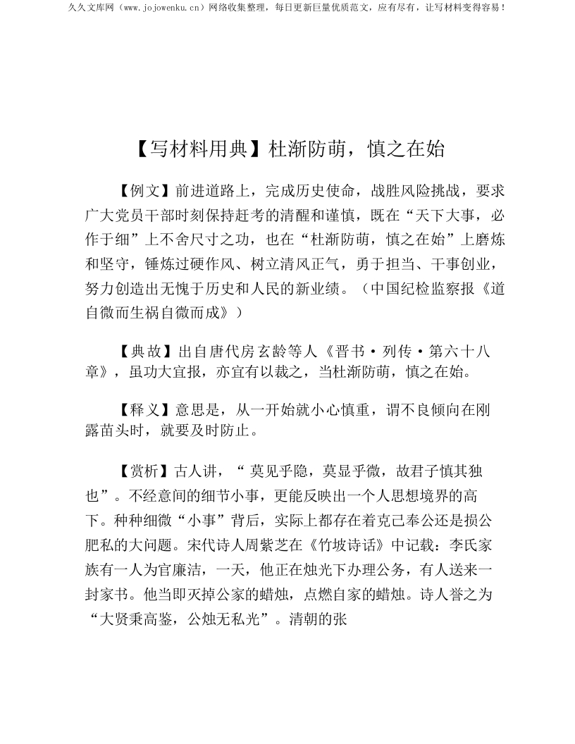 【写材料用典】杜渐防萌,慎之在始