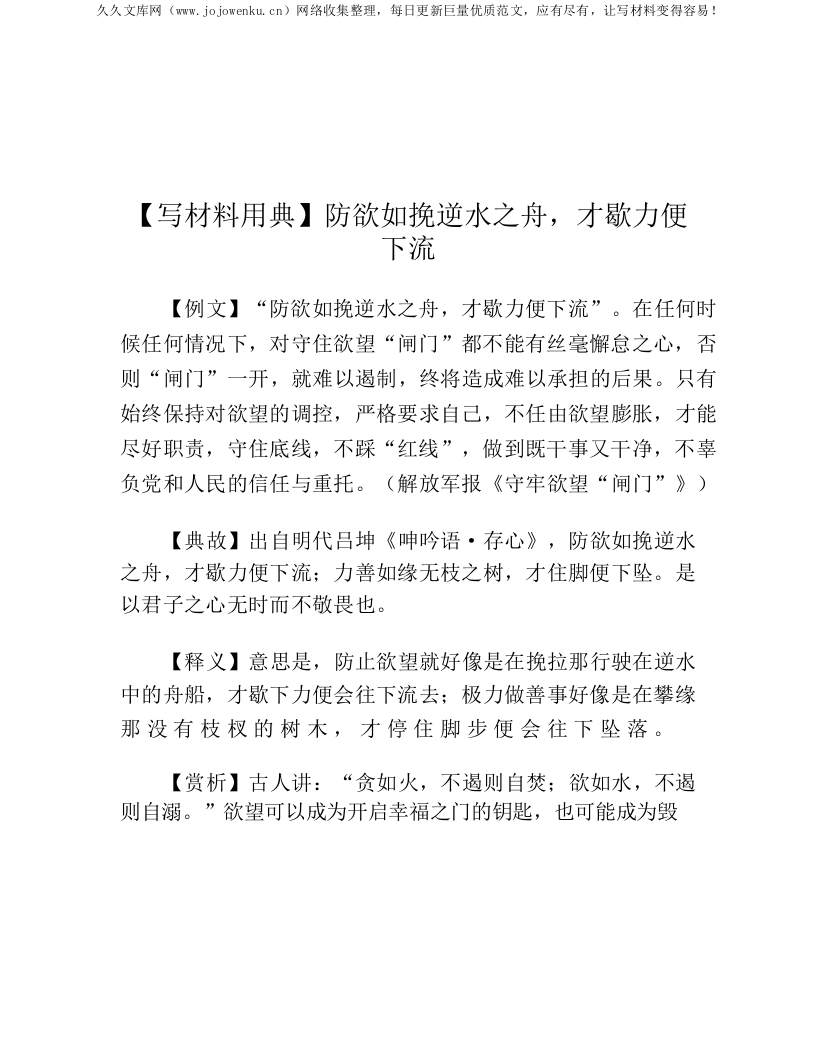 【写材料用典】防欲如挽逆水之舟,才歇力便下流